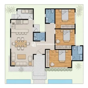 Planos de casa de campo de 1 piso con 3 dormitorios mod. Milán