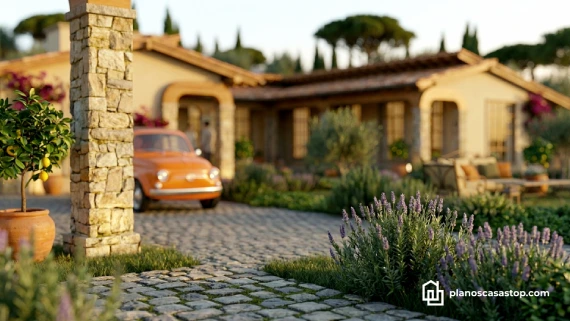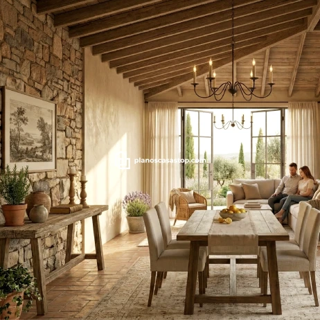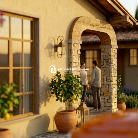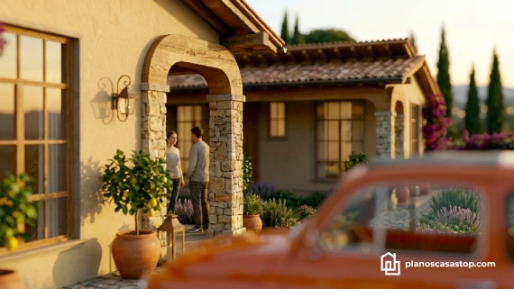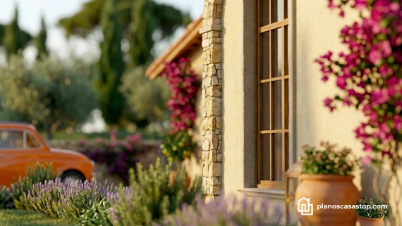 Por otro lado, la integración de materiales nobles es un pilar fundamental en este proyecto. Los pilares de piedra natural y los detalles en madera maciza no solo aportan una estética robusta y elegante, sino que también garantizan una durabilidad que trasciende las modas pasajeras. En consecuencia, vivir en una casa diseñada bajo estos planos es sinónimo de distinción y confort térmico.