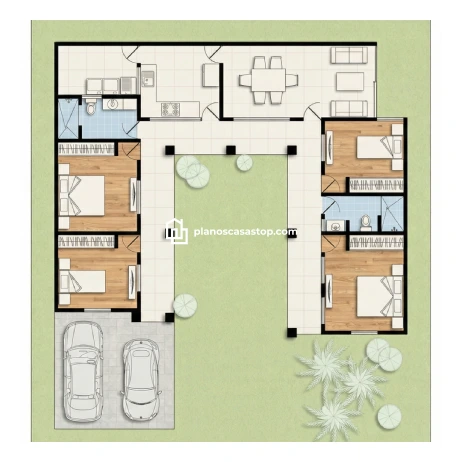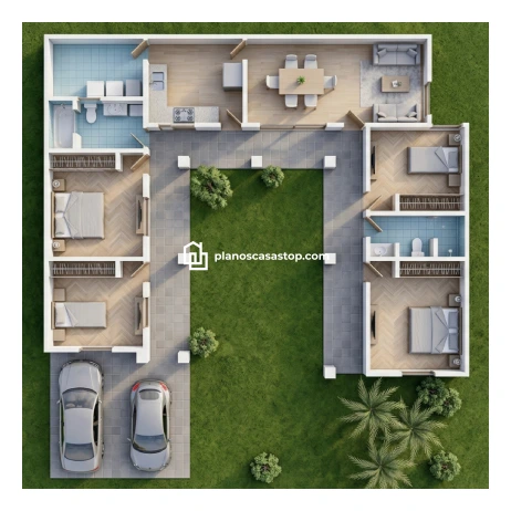 Con un desplante de 12×15 metros, los Planos de casa colonial cedros logran separar con maestría las áreas sociales de las zonas de descanso. En la planta baja, el área social se abre hacia el jardín central, borrando las fronteras entre el interior y el exterior.