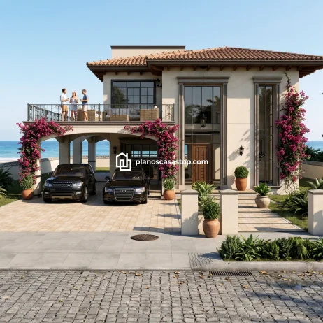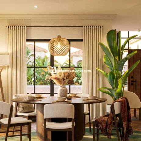 Elegir este diseño no es solo comprar un conjunto de dibujos técnicos; es invertir en una propiedad con alto valor de reventa y una estética atemporal. Asimismo, el diseño está optimizado para climas cálidos y templados, gracias a sus muros de gran espesor sugeridos y la disposición de vanos que favorecen la ventilación cruzada.