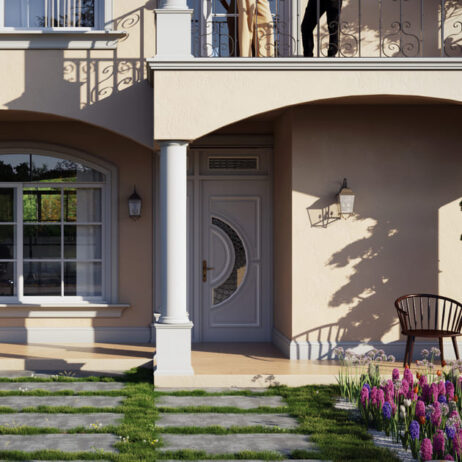 Los detalles arquitectónicos incluyen arcos, columnas y balcones de herrería que refuerzan su estilo colonial. Si buscas planos de casa que combinen belleza y funcionalidad, el diseño Perales es la opción ideal para construir la vivienda de tus sueños.