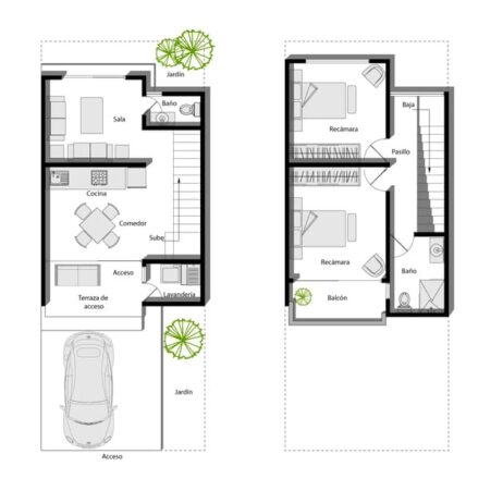 Planos de casa de 2 pisos contemporánea mod. Atlixco