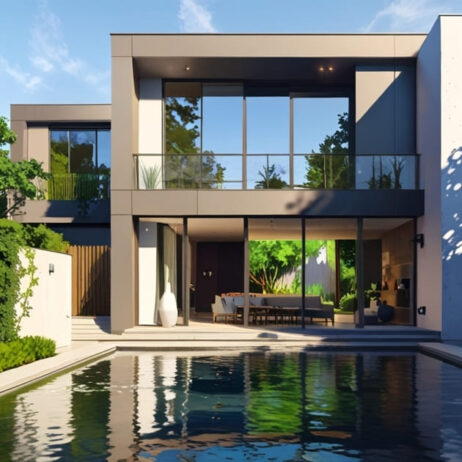 Esta residencia moderna, desarrollada por un despacho de arquitectos especializado en proyectos residenciales, se destaca por su diseño contemporáneo y minimalista. La casa cuenta con una fachada de líneas rectas y acabados en tonos neutros, como gris y blanco, combinados con detalles en madera que le aportan calidez. El uso de grandes ventanales permite la integración del interior con el exterior, mientras que la piscina en el jardín añade un toque de elegancia y sofisticación al conjunto. Ideal para quienes buscan un hogar moderno, funcional y con un toque distintivo de diseño arquitectónico.