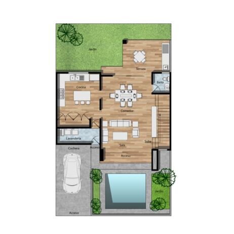 Planos de casa colonial 15×20 de 2 pisos con 3 dormitorios mod. Jazmín