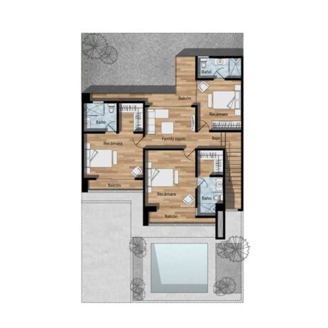 Planos de casa mexicana 10×20 de 2 pisos con 3 dormitorios mod. Castaños
