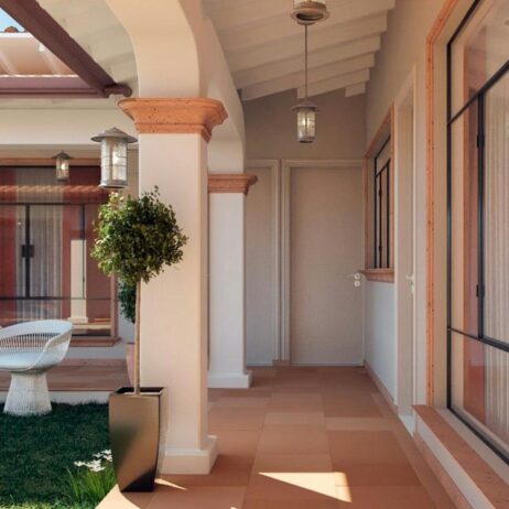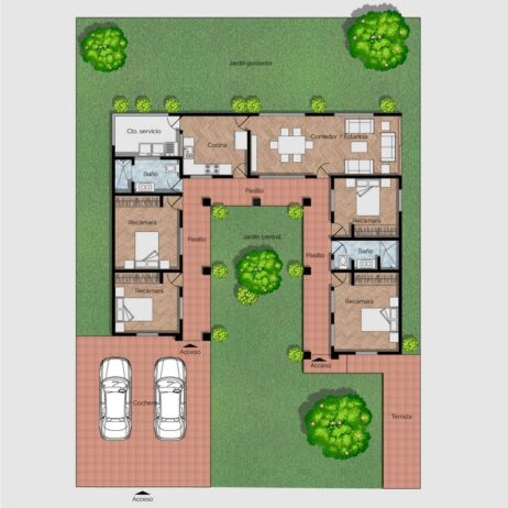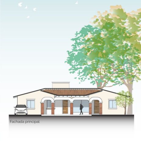 Planos de casa colonial ideal para descansar y convivir. Es un proyecto arquitectónico de casa desplantada en un solo nivel. La casa mide 12mt. de largo por 15.60 de frente insertada en un terreno aproximado de 17.2mt. de largo por 15.6 de frente. La distribución de espacios contempla 4 habitaciones y 2 baños completos. La sala y el comedor se encuentran en una sola estancia amplia y bien iluminada con una comunicación directa hacia la cocina. Todas las habitaciones se comunican con un pasillo perimetral que envuelve el jardín central. El jardín provee de iluminación y ventilación natural a toda la casa. Una arcada colonial delimita el pasillo que comunica las habitaciones de la casa. También cuenta con espacio para servicios que se encuentra junto a la cocina. Este diseño de casa colonial contempla la colocación de losas inclinadas con teja de barro rojo. También los pisos del pasillo son de cuadrado de barro rojo. Estos colores se complementan con el tono ligeramente amarillo de sus muros. Los tonos cálidos provocan un espacio relajante para los habitantes de la casa. Es un proyecto muy cómodo para cualquier familia, ya que al contar con todos los espacios en un solo nivel es muy cómoda para familias con niños y personas de la tercera edad. El sistema constructivo sugerido para este proyecto es a base de: cimentación de mampostería, muros de tabique; castillos, trabes y columnas de concreto armado; acabados exteriores en repellado de concreto rústico, yeso en acabados interiores, loseta cerámica para baños y cocina; además la cancelería propuesta es a base de herrería sin forja. Con losas inclinadas de teja, molduras y columnas, creamos un bonito proyecto arquitectónico para una casa de descanso o de campo.