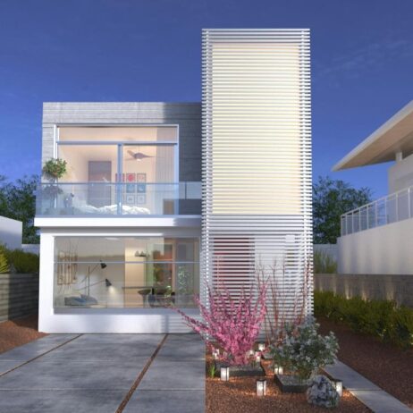 Los planos de casa Cubos son una solución efectiva para un terreno muy angosto. El contenido de este proyecto es de 2 planos y 5 renders. Es un proyecto arquitectónico con un diseño de vivienda minimalista y de vanguardia, con elementos sencillos y lineales. Las dimensiones de la construcción son de 6.5mt. por 11.7mt para un total de 138m² de construcción. El terreno sugerido es de 6.50mt. de frente por 18.5mt. de fondo.