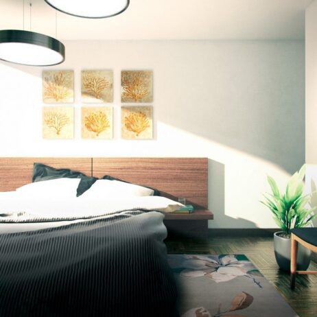 Planos de casa moderna 12×12 de 2 pisos con 2 dormitorios mod. Tikal
