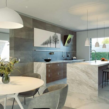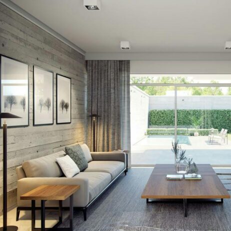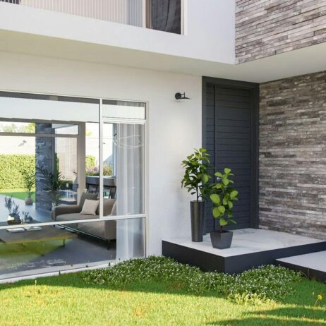 El proyecto de la casa Turín se basa en una distribución de espacios en 2 niveles, en un terreno de 207.00 m2. La planta baja es amplia y espaciosa para poder convivir varias personas simultáneamente sin que se interrumpan mutuamente. Todos los interiores se iluminan y ventilan fácilmente con los grandes ventanales de sus fachadas. La planta alta se distribuye alrededor de la sala de televisión. Las tres recámaras y el estudio privado tienen acceso libre desde la estancia, que se convierte en un cómodo punto de reunión para toda la familia.
