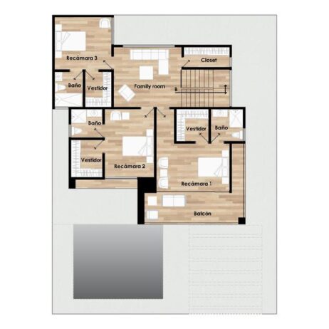 Planos de casa de 2 pisos moderna con 3 dormitorios grandes mod. Costa