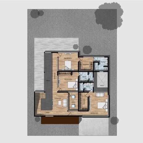 Planos de casa moderna grande 20×20 de 2 pisos con 4 dormitorios mod. Roble