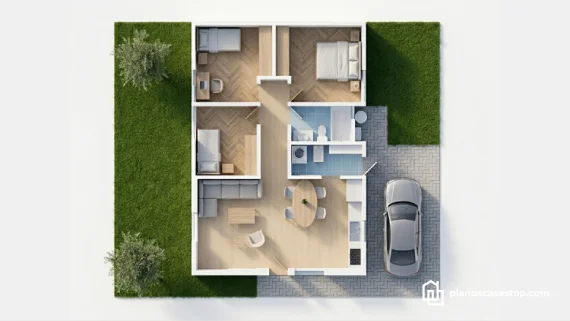 ![Distribución de los [Planos de Casa pequeña Mía] Vista superior de los [Planos de Casa pequeña Mía] con la distribución de una casa de 10x10 metros. Se muestran tres recámaras, sala, comedor, cocina, baño, cuarto de servicio y cochera.](https://planoscasastop.com/wp-content/uploads/2025/06/wc-planos-casas-renders-mia-10-1.jpg)
