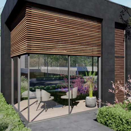 ![Vista exterior de [Planos de Casa pequeña Mía] Vista frontal de [Planos de Casa pequeña Mía] casa de una planta con fachada oscura, persianas de madera y grandes ventanales. Se aprecian jardines floridos y árboles.](https://planoscasastop.com/wp-content/uploads/2025/06/wc-planos-casas-renders-mia-28-462x462.jpg)