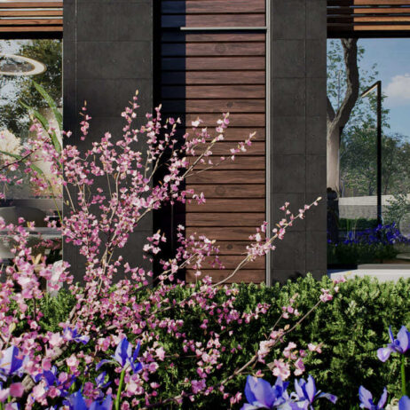 La fachada de la casa combina el minimalismo de líneas rectas con la calidez de los detalles en madera, creando una bienvenida atractiva. Las grandes ventanas de piso a techo inundan los espacios interiores con luz natural, fusionando el ambiente interior con los jardines circundantes. Los [Planos de Casa pequeña Mía] no solo son un diseño, sino una invitación a vivir en armonía con la naturaleza.