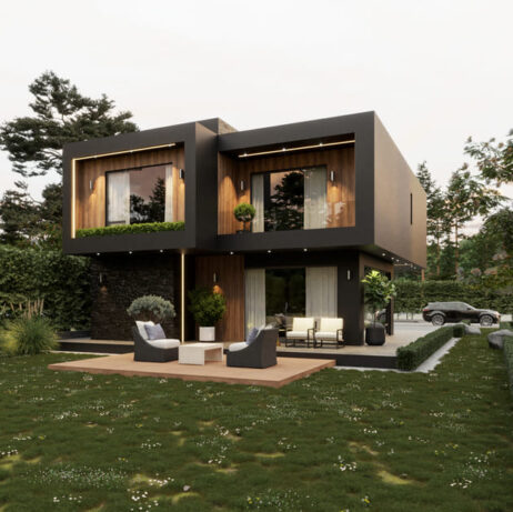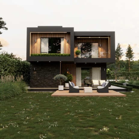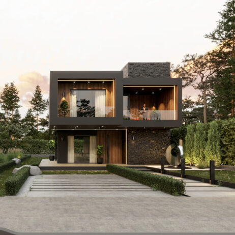 Descubre los exclusivos planos de casa Triana, una propuesta arquitectónica de dos pisos ideal para terrenos de 15 metros de frente por 25 metros de fondo. Este diseño contemporáneo destaca por su estética elegante con muros en color negro y detalles cálidos en madera natural, que crean una armonía visual imponente y acogedora al mismo tiempo.